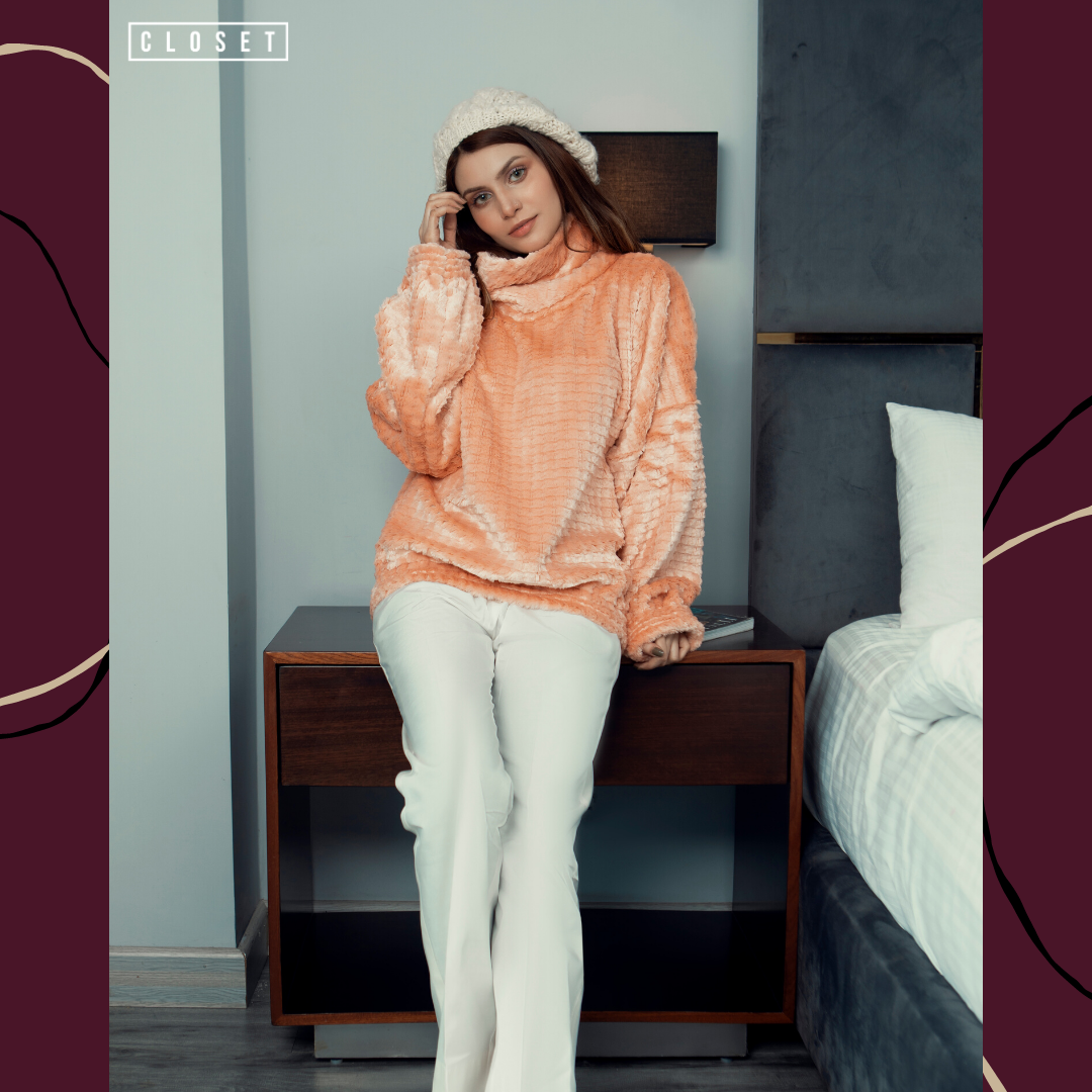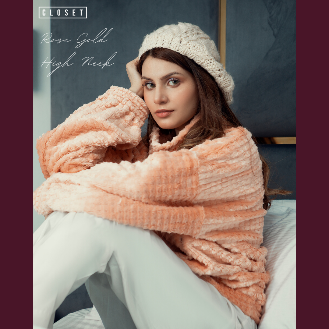 A fluffy super warm hi-neck with bubble sleeves statements to keep yourself warm in winters.